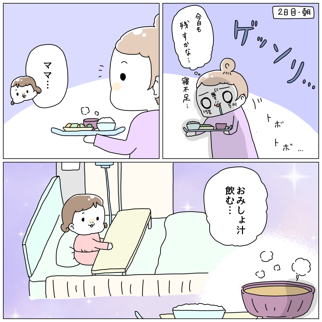 初めての入院付き添いだったので、母子ともに慣れないことだらけで笑